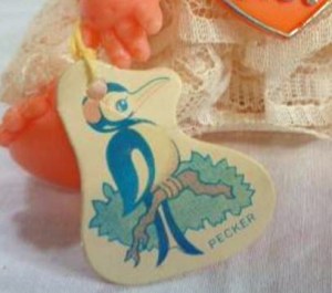 Many people claim their Dime Store dolls are Herman Pecker are from the 60’s and 70’s but since the dolls are unmarked, only the tag will prove if the doll is Herman Pecker. But the tag can be placed on any doll. This makes it impossible to tell if the any doll is really Herman Pecker. I have seen many different looks on Herman Pecker dolls which makes a style impossible to learn. If all Herman Pecker had a certain look I could learn to pick out which dolls had that style. The moral of the story is always trademark your dolls. The dolls are made in Japan and Hong Kong which means they are high quality then later dolls made in China. I found a photo of tag online with has a woodpecker logo, and says the company is from New York.