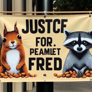 I used Grok AI and the images are a little bit better but I never used it as a Twitter Banner because someone they still look fake, but at least Grok does not deliberately misspell the words. I think if I did it again I would change my slogan to “Never Forget Peanut and Fred” because I know they will not get justice.