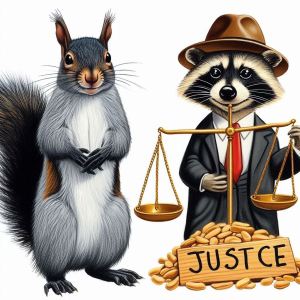 Banner coming up! This time, no buildings or children—just Peanut and Fred, the raccoon and squirrel, shining with justice. Give it a sec!