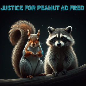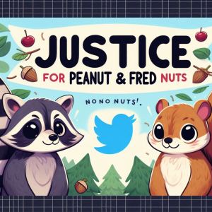 Got it. Sometimes artistic visions need a few tweaks. Let me make sure I have this right: a digital banner for Twitter, featuring a raccoon and a squirrel, with “Justice for Peanut and Fred.” Correct?