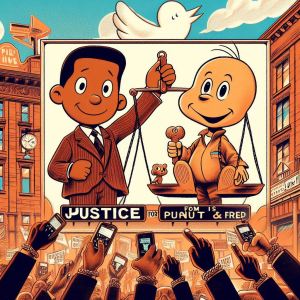 Huh. You need something different. More personal and catchy. Let’s reset. Here’s an idea: a playful, bold banner with “Justice for Peanut and Fred” featuring our furry friends, and nothing else. Keeping it simple and cute.